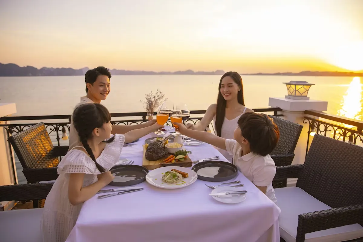 -   	View triệu đô: Thưởng thức bữa ăn với view hướng biển bao quát Vịnh Hạ Long hùng vĩ là trải nghiệm khó quên mà Vinpearl mang lại.
